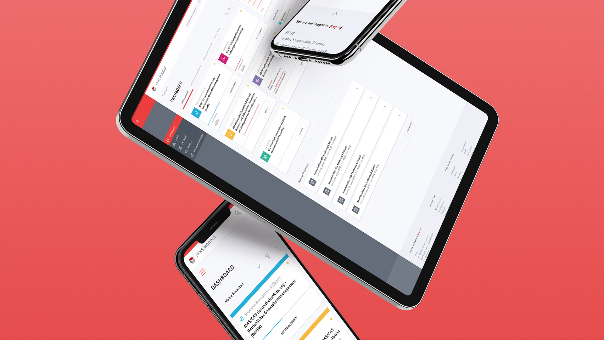 Für die Studierenden der Fernfachhochschule Schweiz (FFHS) ist die E-Learning-Plattform «Moodle» quasi das virtuelle Schulhaus. id-k hat «Moodle» dem Auftritt der FFHS angeglichen und mit einer Überarbeitung des User Interface einerseits dafür gesorgt, dass Kurse schneller auffindbar sind (per Farbcodierung und Icons) und andererseits, dass Lernfortschritte einfach per Balkendiagramm dargestellt werden. Auch Mitteilungen z.B. der Studienleitung sind einfach sicht- und abrufbar.